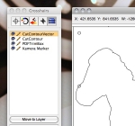 Die Druck-Industrie setzt RIP-Software ein um grossformatige Drucke auszugeben. Diese sollen dann anschliessend in Form gebracht werden... Die Schnittstelle bildet oft ein spezielles Datei-Format, das i-cut Format. Cenon importiert diese Datei, die sowohl die Positionen der aufgedruckten Markierungen als auch die auszugebende Grafikkontur enthält. Beides wird direkt auf die richtige Lage in Cenon importiert, so dass die Kamera-Vermessung und Ausgabe zügig von der Hand gehen.