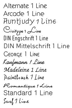 Diese Gravurschriften sind hochwertige einlinige Schriften, die speziell zum Gravieren und Plotten entwickelt wurden. Da diese Schriften nicht gefüllt sind, werden sie sehr schnell ausgegeben.